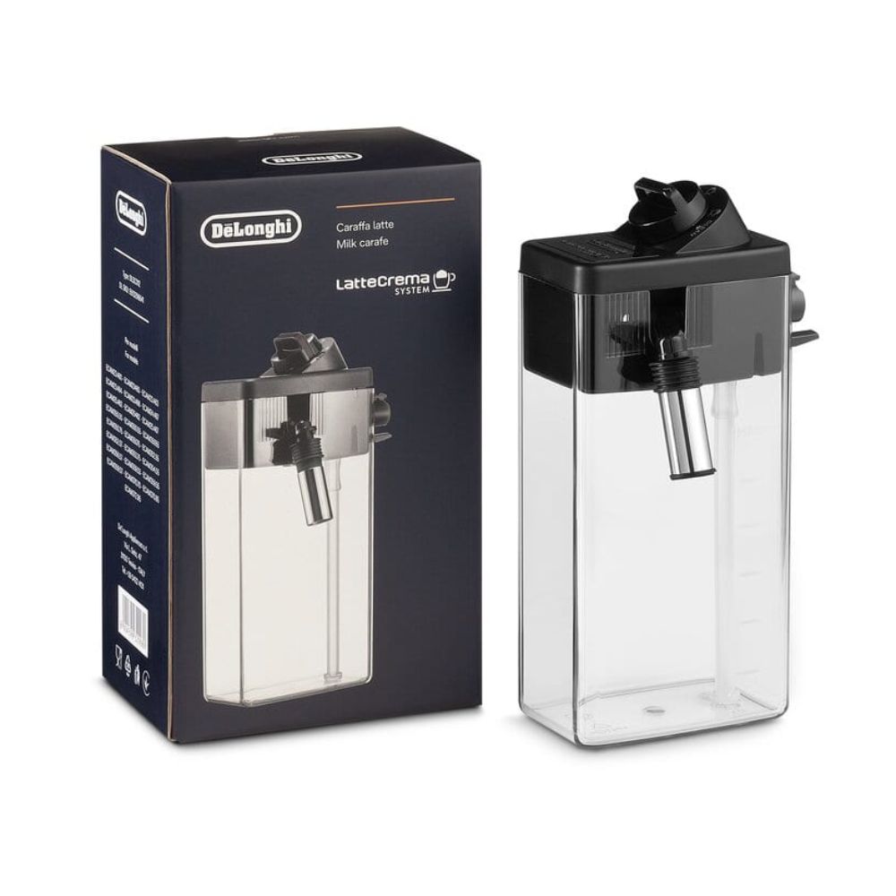 Karafa na mléko DELONGHI DLSC012 slouží jako praktický doplněk pro přípravu jemné a krémové mléčné pěny pomocí systému LatteCrema, který zajišťuje stabilní konzistenci mléčných nápojů. Nádobu lze jednoduše vyjmout z kávovaru, pohodlně ji uložit do chladničky a po použití ji snadno znovu nasadit zpět. Součástí je také automatický proplach, který se spouští po každé přípravě a výrazně usnadňuje údržbu i udržení čistoty bez nutnosti složitého ručního čištění. Karafa je navíc vhodná pro mytí v myčce, což dále zvyšuje komfort používání. Pro nejlepší výsledek se doporučuje používat čerstvé a vychlazené mléko. Díky možnosti využití více nádob lze snadno střídat různé druhy mléka bez ovlivnění chuti.