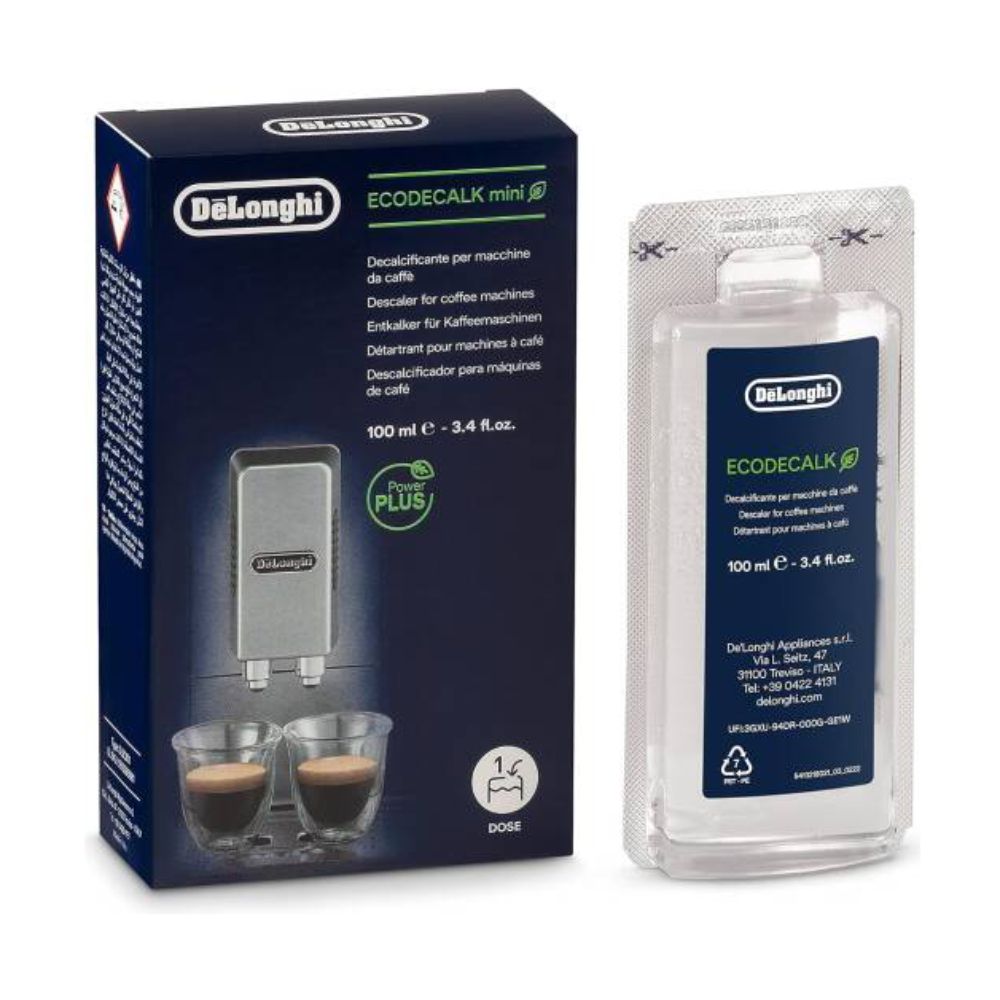 Odvápňovač DELONGHI Mini 5513295981 DLSC200 EcoDecalk 1x100 ml je speciální odvápňovací roztok určený k odstranění usazenin vodního kamene v kávovarech, nejen značky De’Longhi. Balení obsahuje 1× 100 ml, což postačuje přibližně na jeden kompletní odvápňovací proces. Pravidelným používáním pomáhá udržet optimální výkon přístroje, zlepšuje jeho efektivitu a prodlužuje celkovou životnost. Tento čisticí prostředek je založen na přírodních složkách a je biologicky rozložitelný, takže je šetrný k životnímu prostředí. Obalové materiály jsou plně recyklovatelné - kartonová část nese certifikaci FSR a plastová lahvička je částečně vyrobena z recyklovaných surovin.
