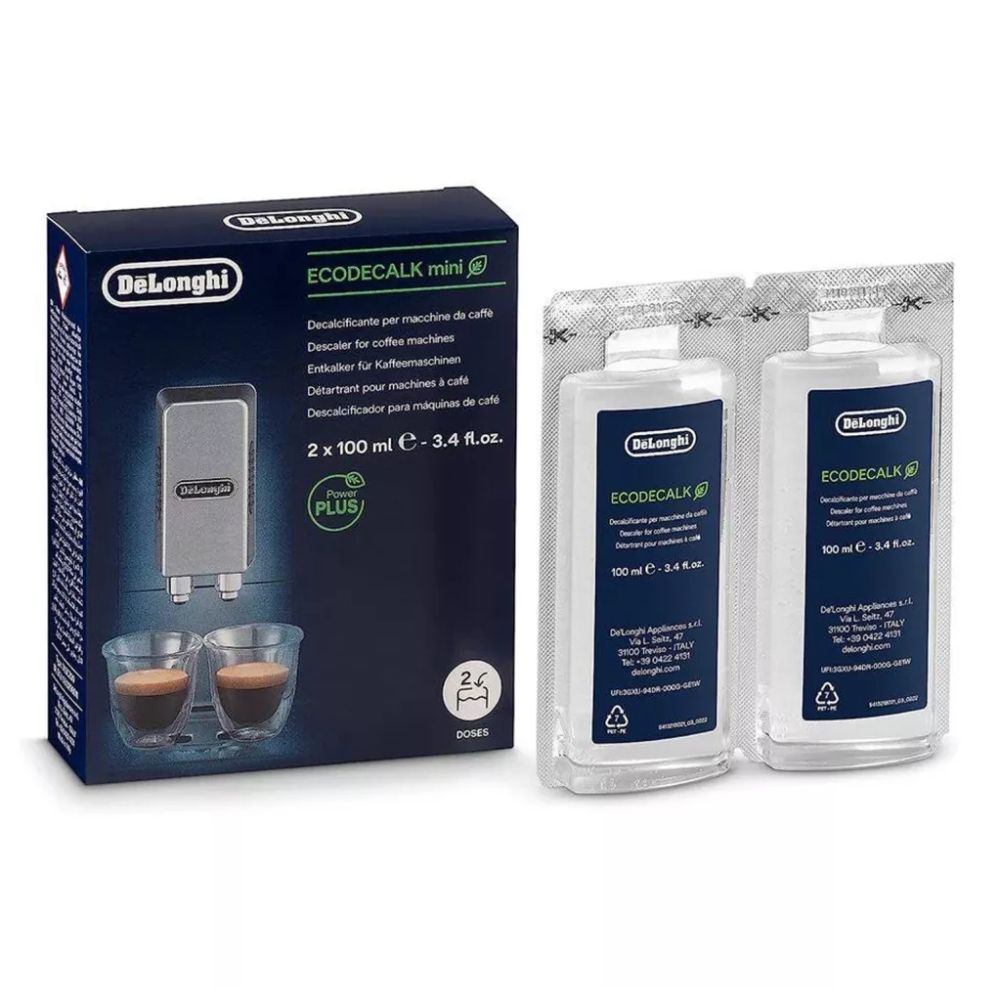 Odvápňovač DELONGHI Mini DLSC200 EcoDecalk 2x100 ml je speciální odvápňovací roztok určený k odstranění usazenin vodního kamene v kávovarech, nejen značky De’Longhi. Balení obsahuje 2× 100 ml, což postačuje přibližně na dva kompletní odvápňovací procesy. Pravidelným používáním pomáhá udržet optimální výkon přístroje, zlepšuje jeho efektivitu a prodlužuje celkovou životnost. Tento čisticí prostředek je založen na přírodních složkách a je biologicky rozložitelný, takže je šetrný k životnímu prostředí. Obalové materiály jsou plně recyklovatelné - kartonová část nese certifikaci FSR a plastová lahvička je částečně vyrobena z recyklovaných surovin.