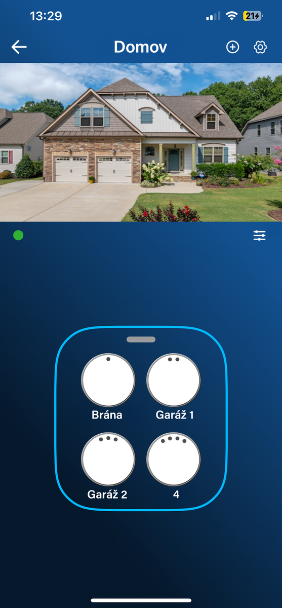 - Ovládá bránu přes mobilní aplikaci, případně mechanickými tlačítky