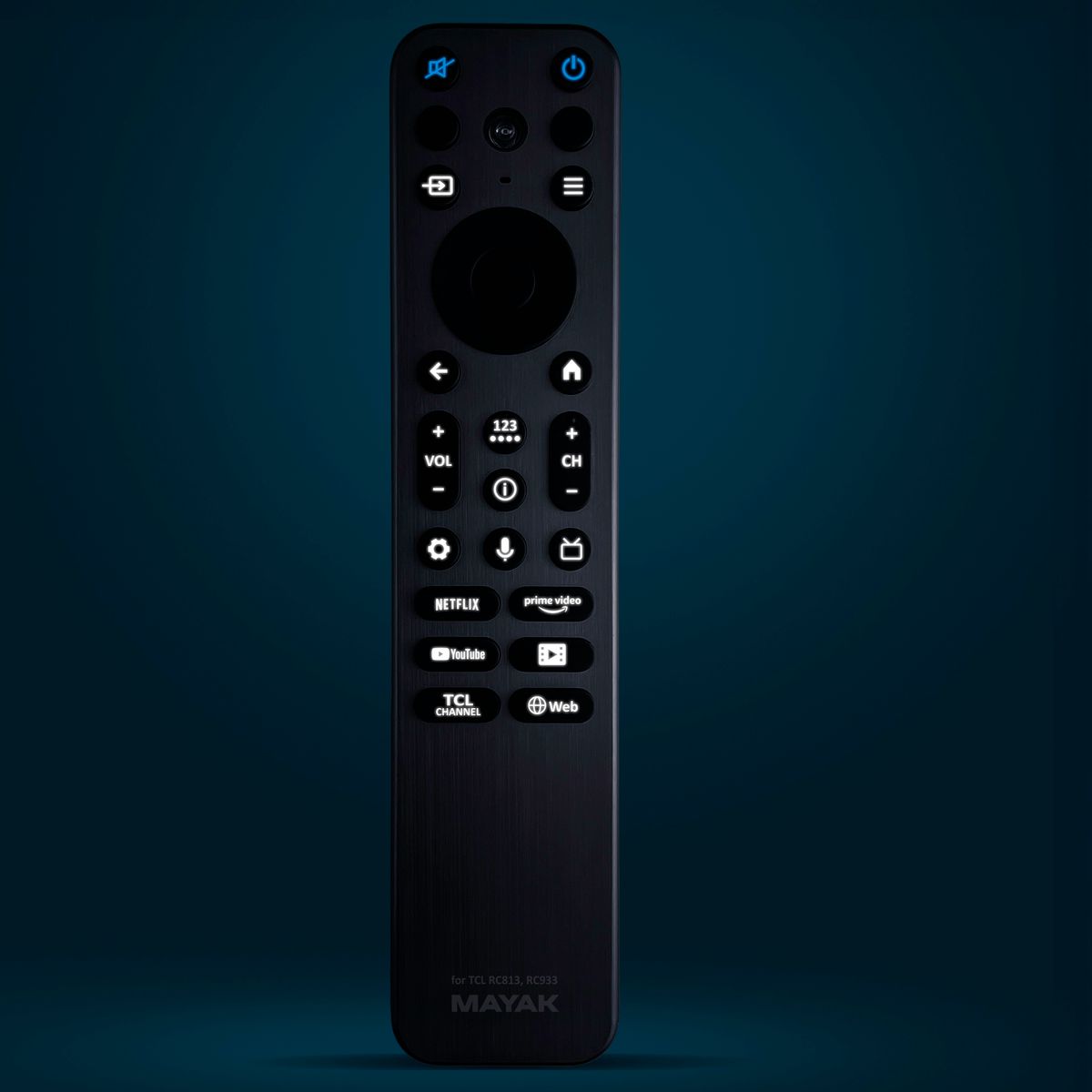 Dálkový ovladač TCL 55C855, 65C855, 75C855, 85C855, 85X955, 98X955, 115X955 max – luxusní, kovový a podsvícený duplikát 1:1 originálního dálkového ovladače.