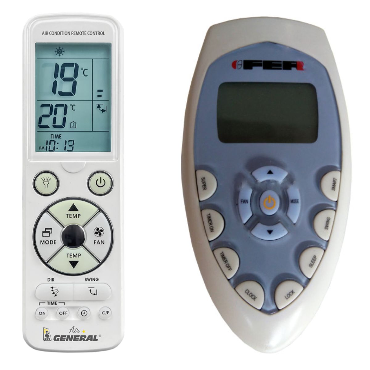 Ovladač je dodáván ve verzi dálkového ovladače General AIR Luxury (zobrazen vlevo), který byl navržen speciálně pro klimatizace Ferroli Climatizazione. Garantujeme Vám, že dostanete ovladač, který plně nahradí Váš původní originální ovladač a bude mít všechny funkce. Ovladač již není potřeba párovat nebo kódovat. Obdržíte od nás ovladač, který je připraven k použití – jediné, co musíte udělat, je vložit baterie a ovladač hned funguje.