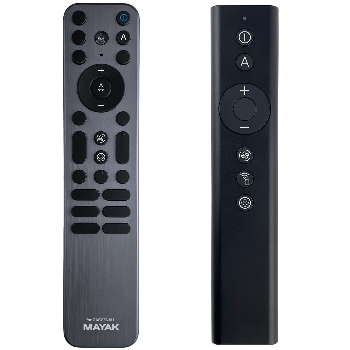 Ovladač je dodáván ve verzi dálkového ovladače MAYAK (zobrazen vlevo). Ovladač již není potřeba párovat nebo kódovat. Obdržíte od nás ovladač, který je připraven k použití – stačí vložit baterie a ovladač hned funguje.