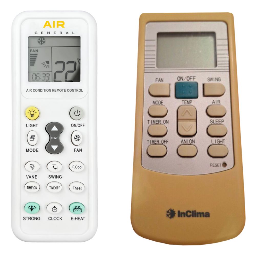 Ovladač je dodáván ve verzi dálkového ovladače General AIR (zobrazen vlevo), který byl vyroben speciálně pro klimatizace INCLIMA. Garantujeme Vám, že dostanete ovladač, který bude mít všechny důležité funkce Vašeho původního originálního ovladače.