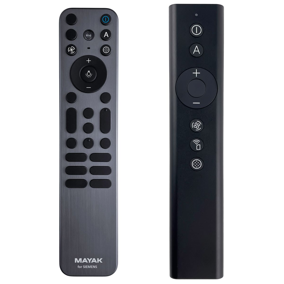 Ovladač je dodáván ve verzi dálkového ovladače MAYAK (zobrazen vlevo). Ovladač již není potřeba párovat nebo kódovat. Obdržíte od nás ovladač, který je připraven k použití – stačí vložit baterie a ovladač hned funguje.