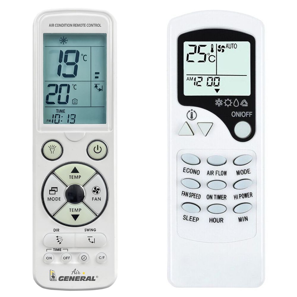 Ovladač je dodáván ve verzi dálkového ovladače General AIR Luxury (zobrazen vlevo), který byl navržen speciálně pro klimatizace AIRCOOL. Garantujeme Vám, že dostanete ovladač, který plně nahradí Váš původní originální ovladač a bude mít všechny funkce. Ovladač již není potřeba párovat nebo kódovat. Obdržíte od nás ovladač, který je připraven k použití – jediné, co musíte udělat, je vložit baterie a ovladač hned funguje.
