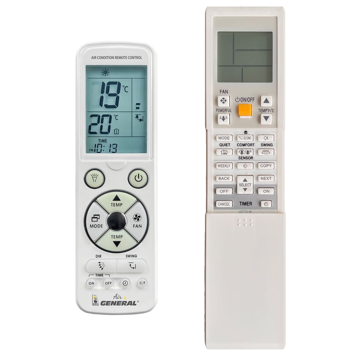 Ovladač je dodáván ve verzi dálkového ovladače General AIR Luxury (zobrazen vlevo), který byl navržen speciálně pro klimatizace DAIKIN. Garantujeme Vám, že dostanete ovladač, který plně nahradí Váš původní originální ovladač a bude mít všechny funkce. Ovladač již není potřeba párovat nebo kódovat. Obdržíte od nás ovladač, který je připraven k použití – jediné, co musíte udělat, je vložit baterie a ovladač hned funguje.