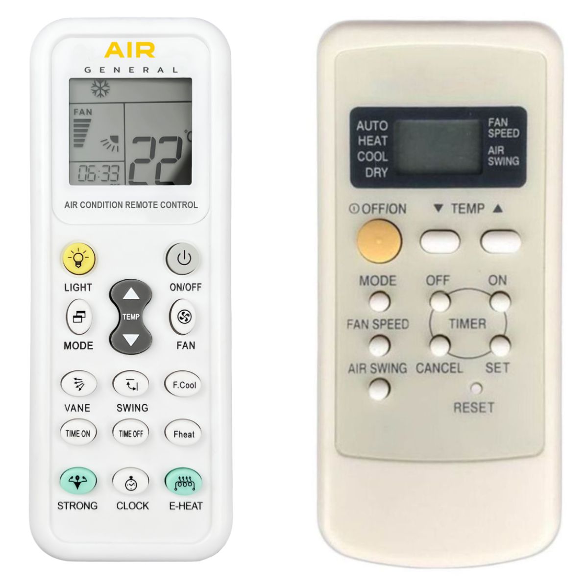 Ovladač je dodáván ve verzi dálkového ovladače General AIR (zobrazen vlevo), který byl vyroben speciálně pro klimatizace PANASONIC. Garantujeme Vám, že dostanete ovladač, který bude mít všechny důležité funkce Vašeho původního originálního ovladače.