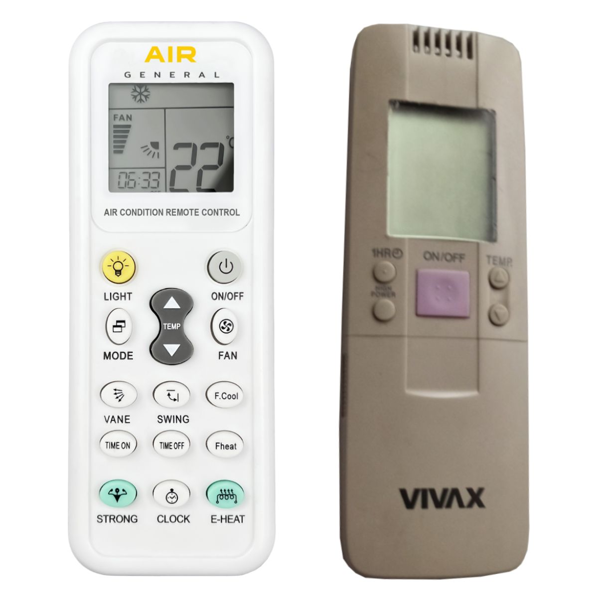 Ovladač je dodáván ve verzi dálkového ovladače General AIR (zobrazen vlevo), který byl vyroben speciálně pro klimatizace VIVAX. Garantujeme Vám, že dostanete ovladač, který bude mít všechny důležité funkce Vašeho původního originálního ovladače.