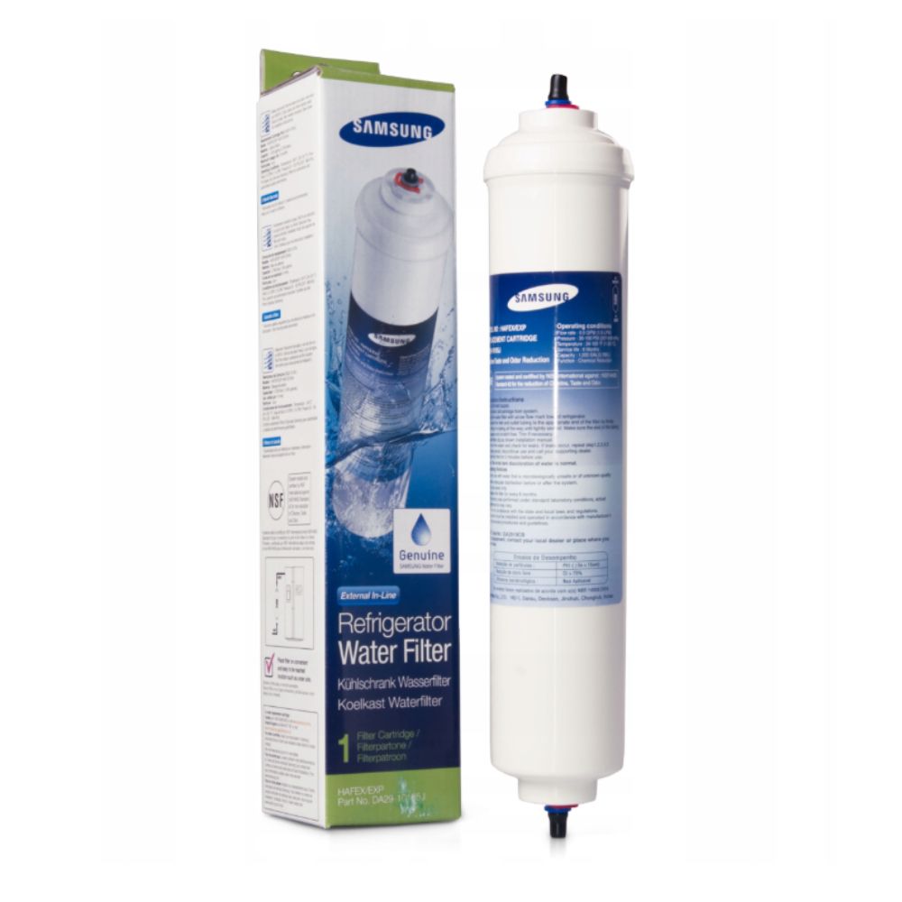 Originální vodní filtr Aqua-Pure DA29-10105J pro dvoudveřovou lednici SAMSUNG, který má nainstalovaný vnitřní filtr s následujícími čísly výrobce: WSF-100, K32010CB, EF-9603, WSF100 v2, HAFEX-EXP, K3MFC2010F, Magic Water Filter, DA29-10105C, DA29-10105E, HAF-EX/EAA, DA2010CB
