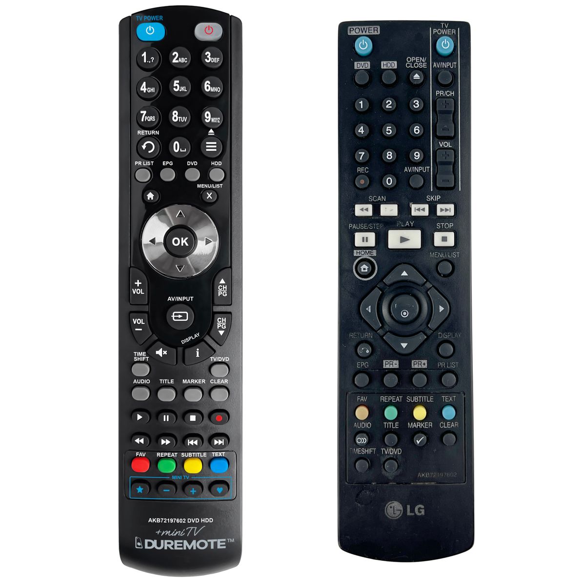 Srovnání: Ostatní univerzální nebo programovatelné náhrady mají (kvůli úspoře nákladů) univerzální rozložení s nesprávně označenými tlačítky, a proto potřebují návod (tabulku funkcí), který říká, jaká je skutečná funkce jednotlivých tlačítek. To může způsobovat zmatek a nutnost neustálého vracení se k návodu je pro koncového uživatele obtěžující. Naopak při používání našeho dálkového ovladače General duremote Mini-TV nahlížet do návodu vůbec nepotřebujete, protože tlačítka dělají přesně to, co symbolizuje jejich popisek.