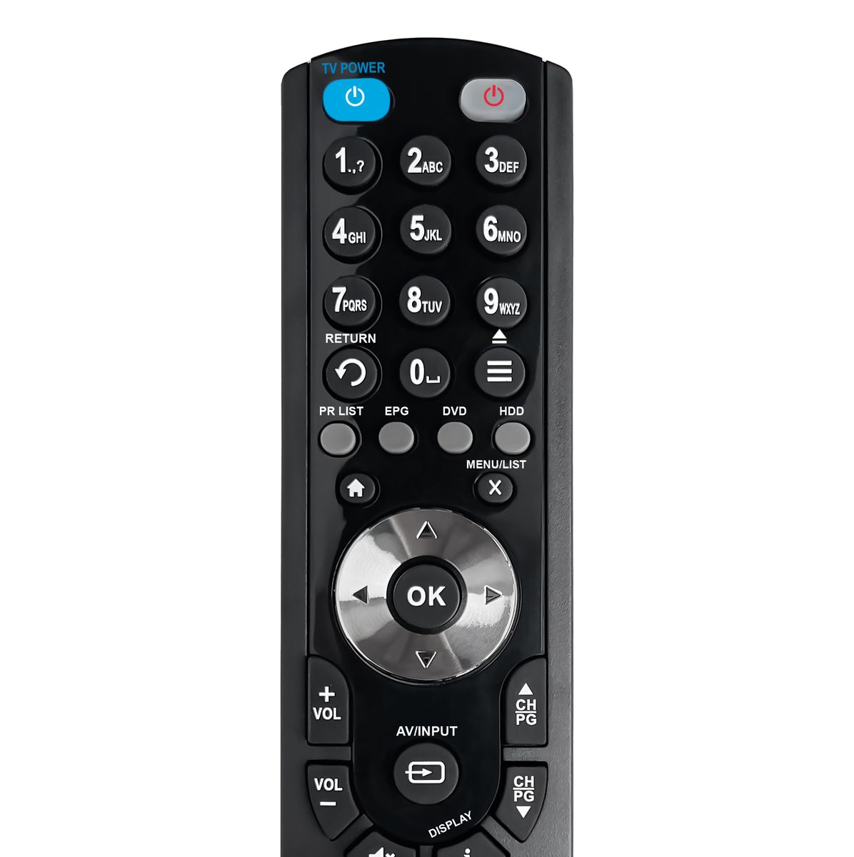 Ovladač je dodáván ve verzi značkového dálkového ovladače General duremote Mini-TV (zobrazen vlevo)