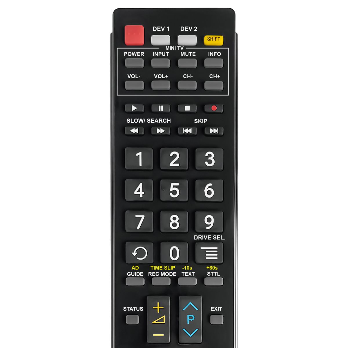 DUPLIKÁT 2 v 1: Tento ovladač má sekci tlačítek MINI-TV pro funkce, které jej můžete naučit z Vašeho TV ovladače. To znamená, že jedním ovladačem můžete ovládat 2 přístroje, například set top box + základní funkce TV. Způsob učení tlačítek naleznete v přiloženém návodu v krabičce, ve které Vám bude ovladač dodán.
