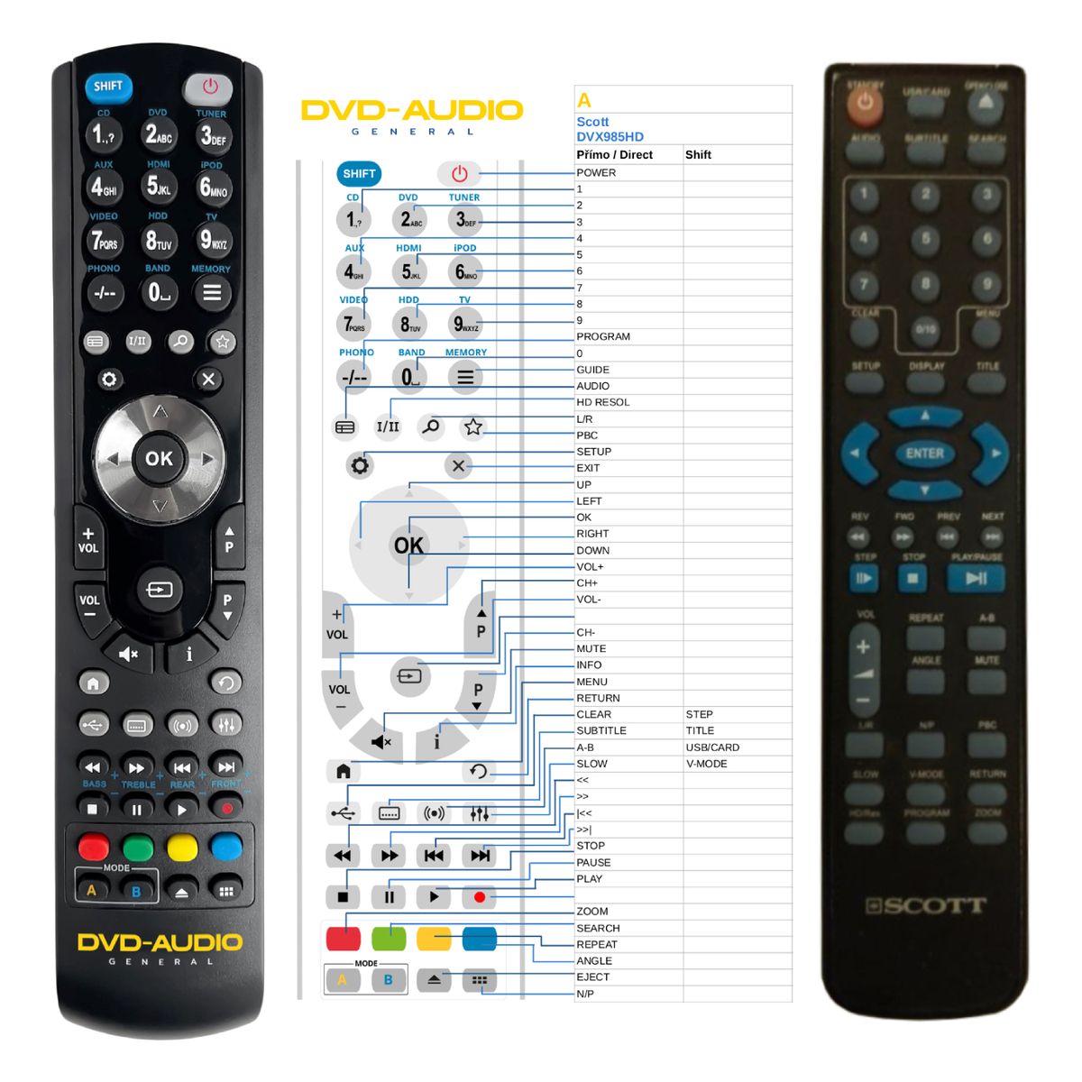 Náhradní dálkový ovladač SCOTT DVX985HD - 100% náhrada 1:1 za originální dálkový ovladač.