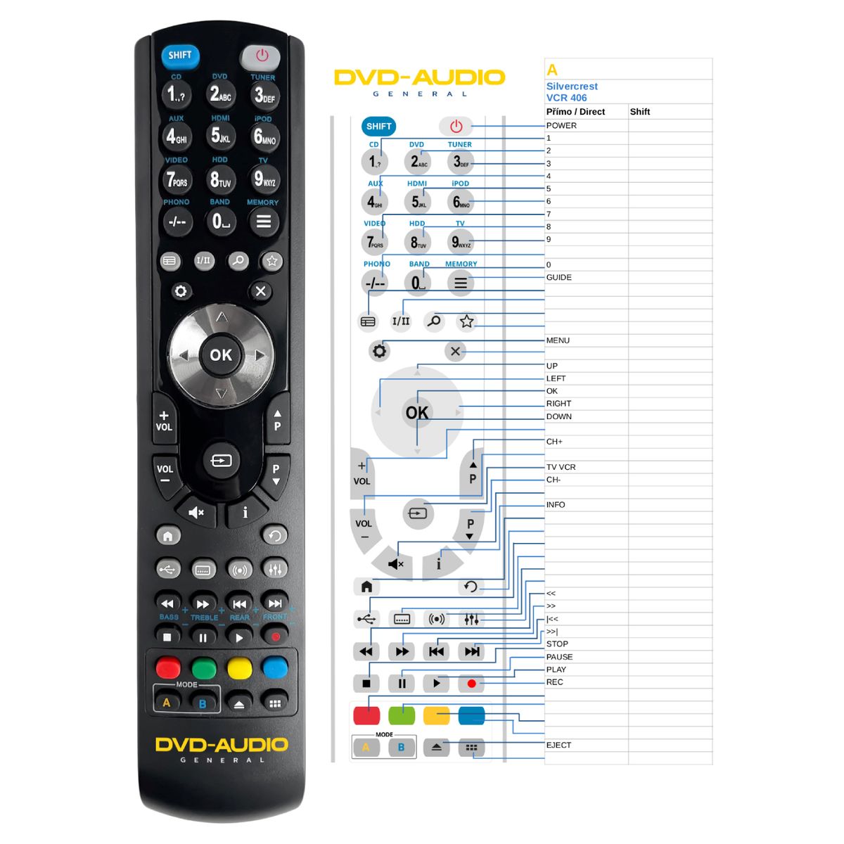 Náhradní dálkový ovladač SILVERCREST VCR406 - 100% náhrada 1:1 za originální dálkový ovladač.
