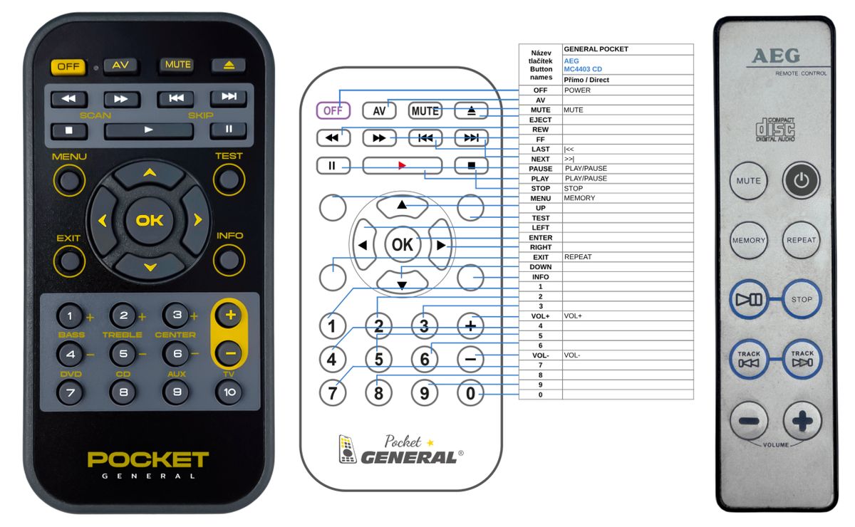 Náhradní dálkový ovladač AEG MC4403 CD - 100% náhrada 1:1 za originální dálkový ovladač.