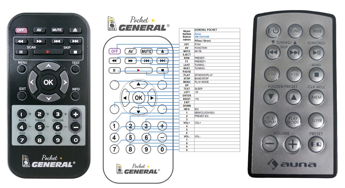 AUNA TC-386 - kompatibilní značkový dálkový ovladač General