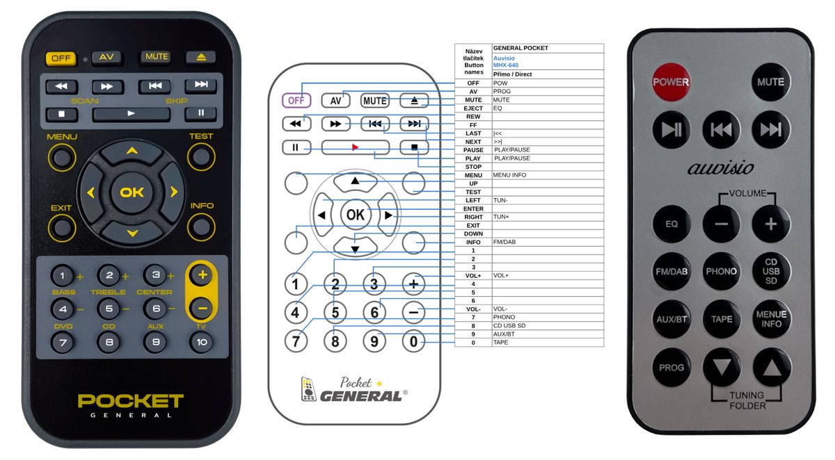 Náhradní dálkový ovladač AUVISIO MHX-640 (MHX640) - 100% náhrada 1:1 za originální dálkový ovladač.