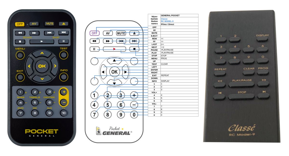 Náhradní dálkový ovladač CLASSÉ RC MODEL-9 (RC MODEL9) - 100% náhrada 1:1 za originální dálkový ovladač.
