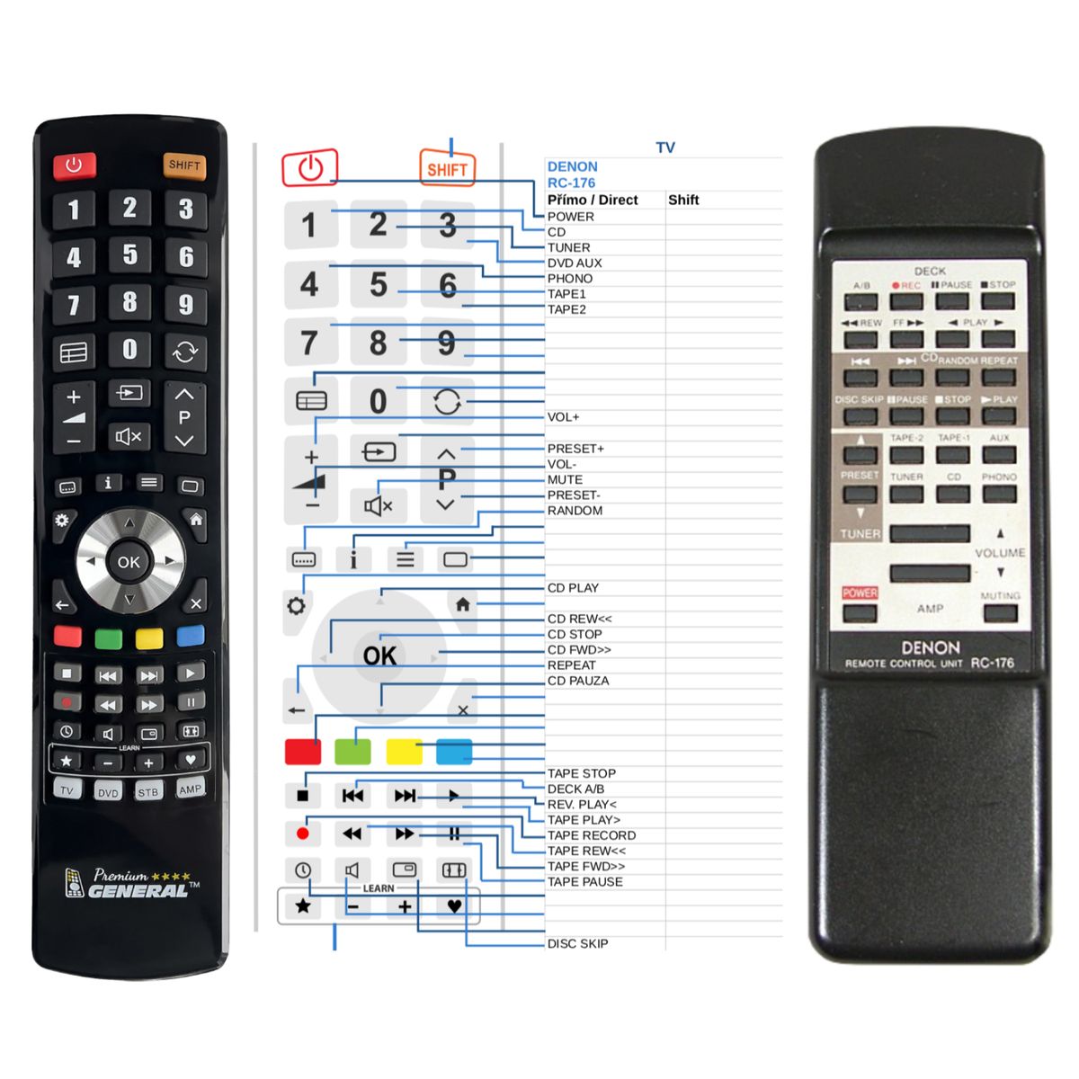 DENON RC-240 - kompatibilní značkový dálkový ovladač General