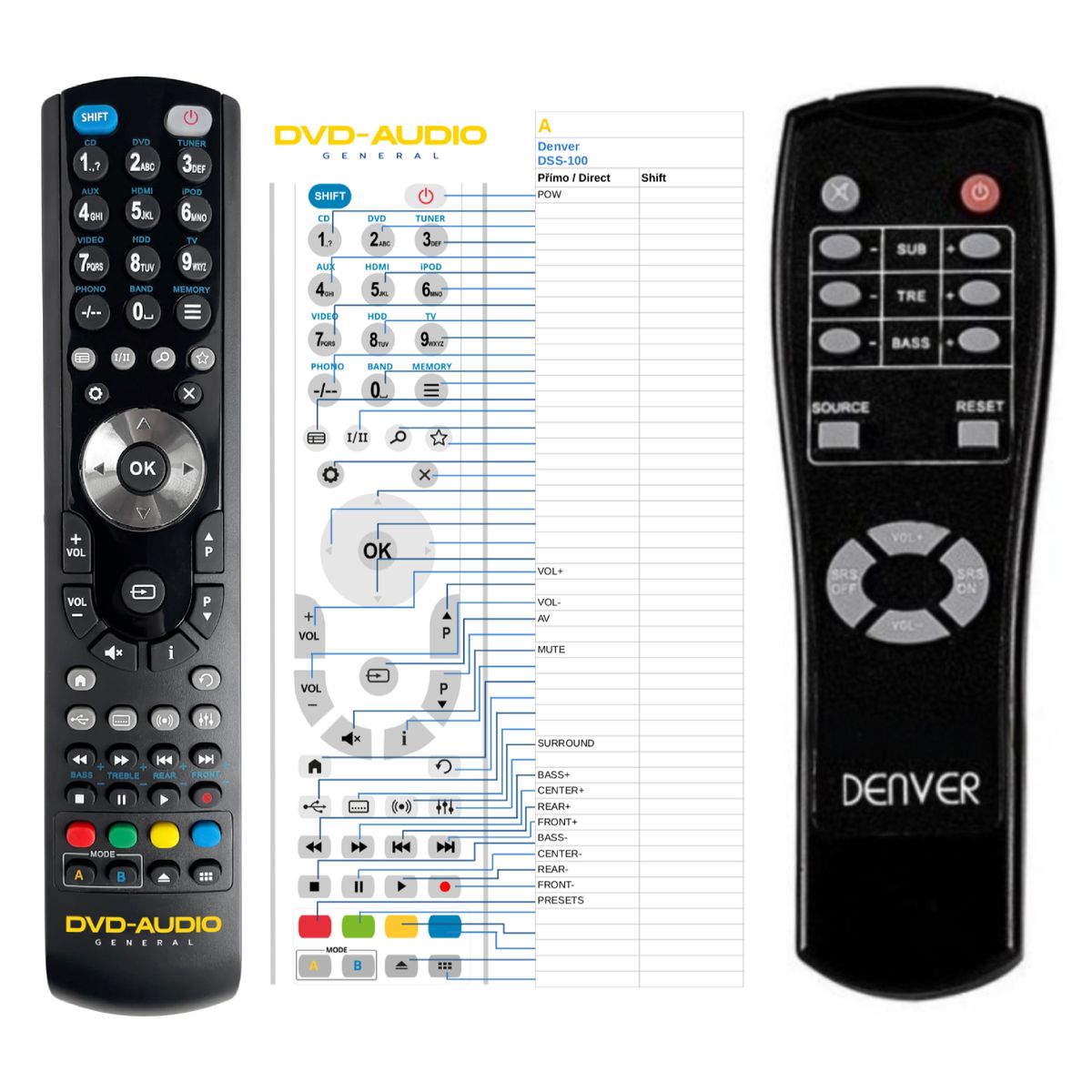 Náhradní dálkový ovladač DENVER DSB-100 (DSB100) - 100% náhrada 1:1 za originální dálkový ovladač.