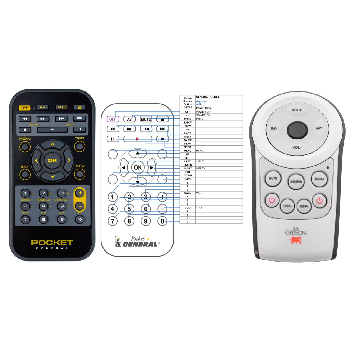 Ovladač je dodáván ve verzi značkového dálkového ovladače General POCKET (zobrazen vlevo). Garantujeme Vám, že dostanete ovladač, který plně nahradí Váš původní originální ovladač a bude mít naprosto všechny funkce stejné.