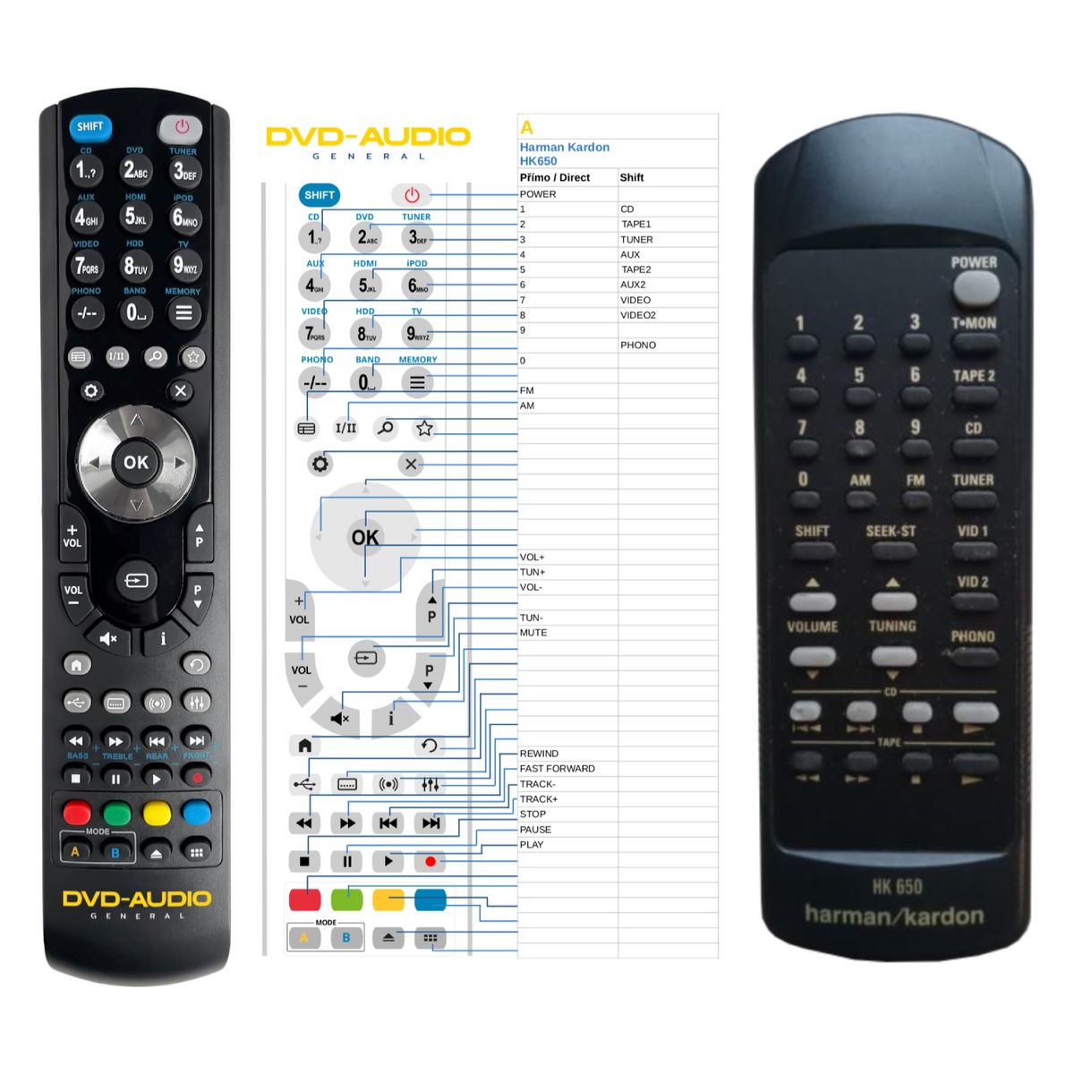 Náhradní dálkový ovladač HARMAN KARDON HK650, HK690 - 100% náhrada 1:1 za originální dálkový ovladač.