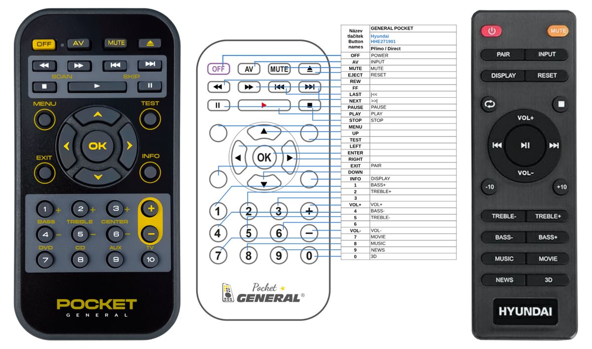 Náhradní dálkový ovladač HYUNDAI HHE271901 - 100% náhrada 1:1 za originální dálkový ovladač.
