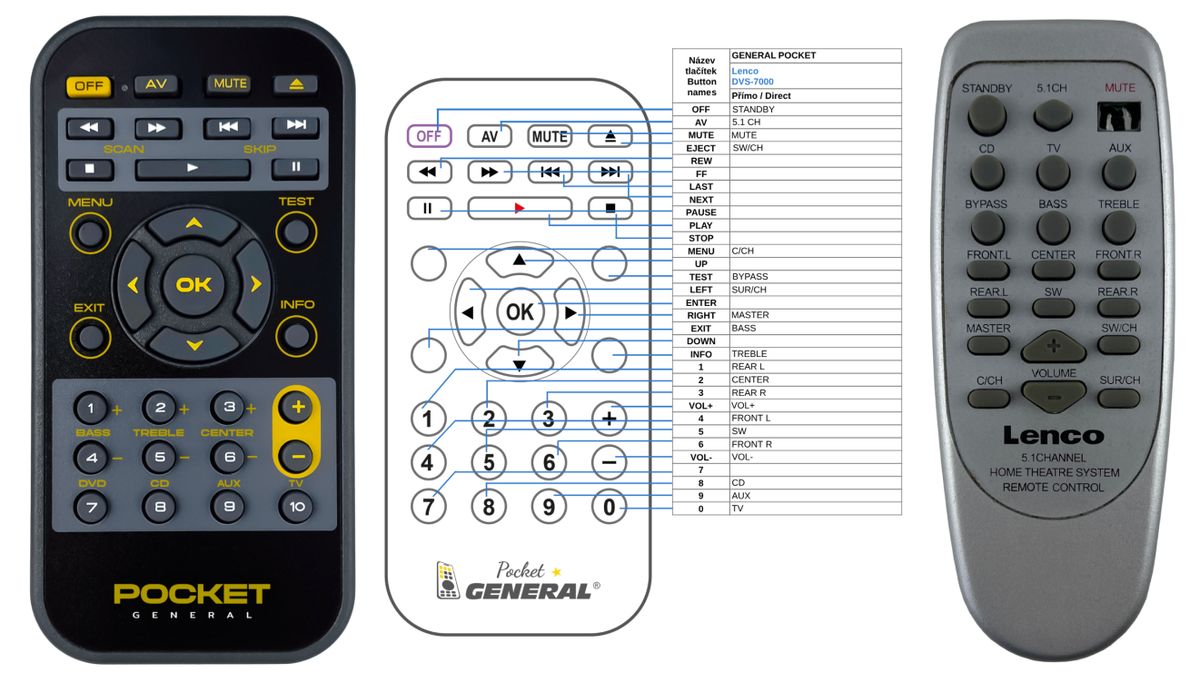 Náhradní dálkový ovladač LENCO DVS-7000 (DVS7000) - 100% náhrada 1:1 za originální dálkový ovladač.