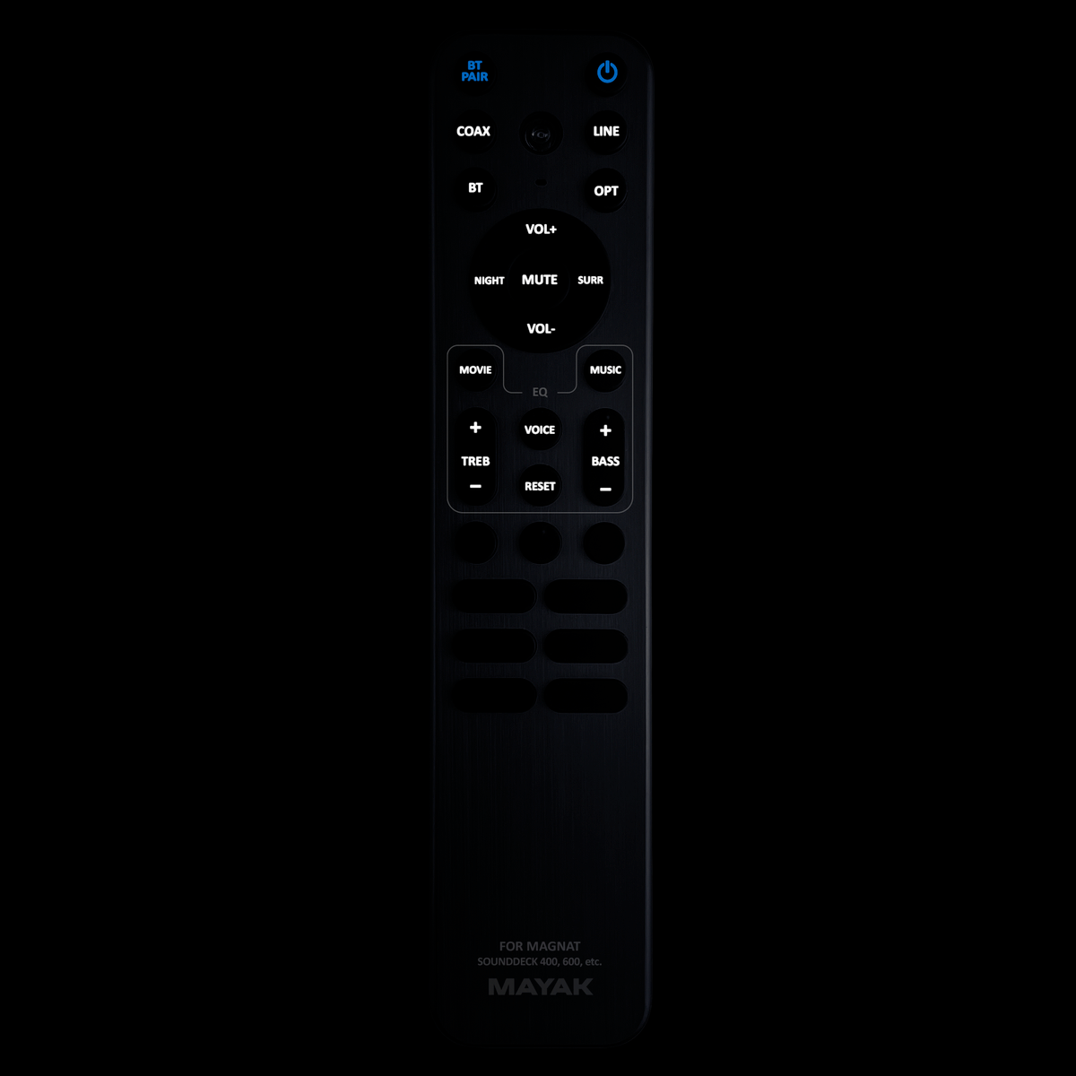 Dálkový ovladač MAGNAT Sounddeck 100, 400, 400 BTX, 600, 700 – luxusní, kovový a podsvícený duplikát 1:1 originálního dálkového ovladače.