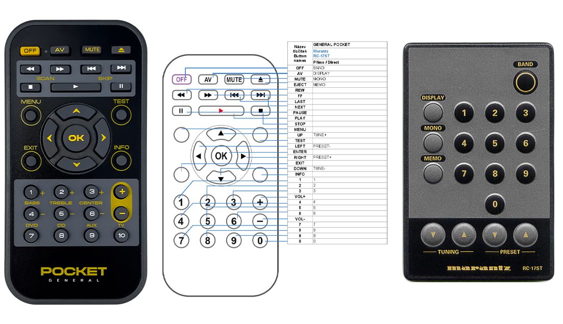 Náhradní dálkový ovladač MARANTZ RC-17ST (RC17ST) - 100% náhrada 1:1 za originální dálkový ovladač.
