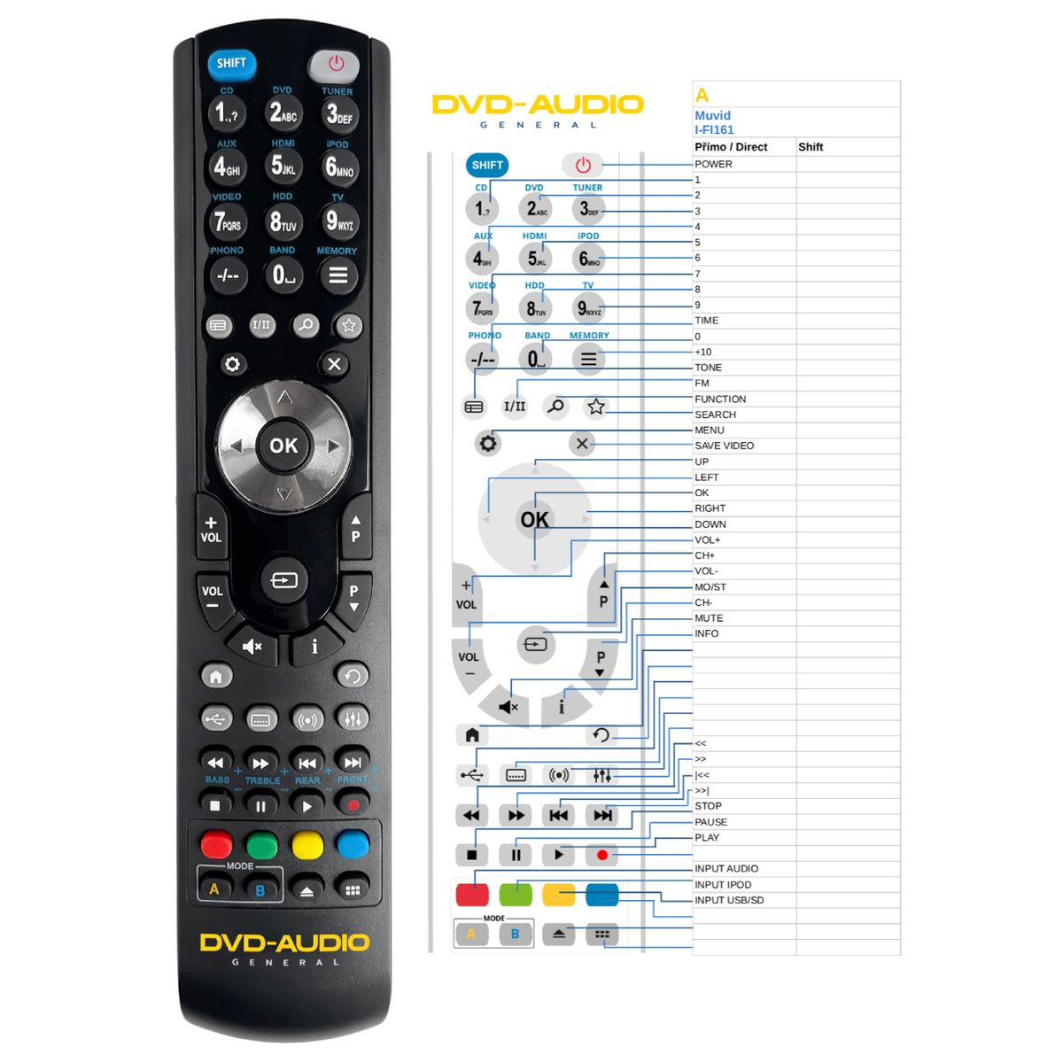 Náhradní dálkový ovladač MUVID I-FI161 (IFI161) - 100% náhrada 1:1 za originální dálkový ovladač.