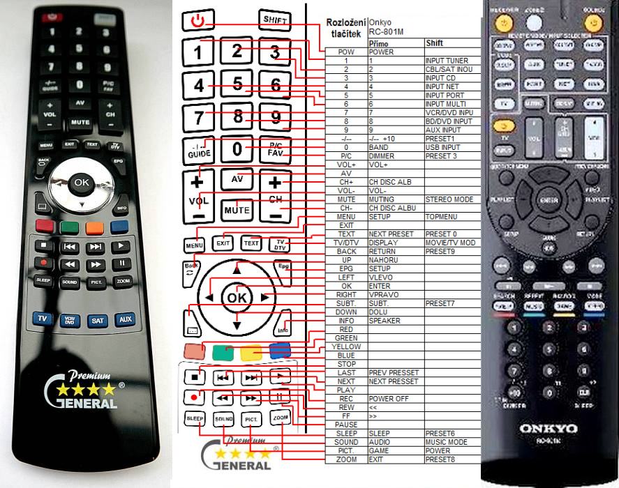 ONKYO RC-82S - kompatibilní značkový dálkový ovladač General