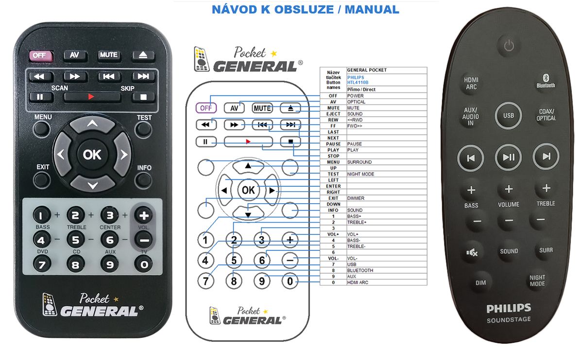 PHILIPS HTL7140B, HTL7140/B12 - náhradní dálkový ovladač