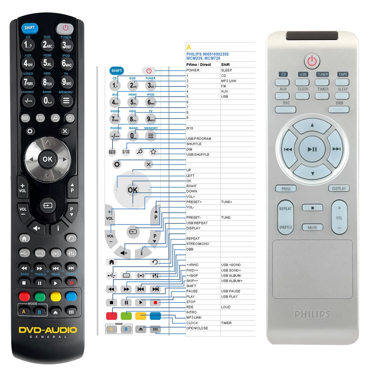 Náhradní dálkový ovladač PHILIPS 996510002352, MCM239, MCM726 - 100% náhrada 1:1 za originální dálkový ovladač.