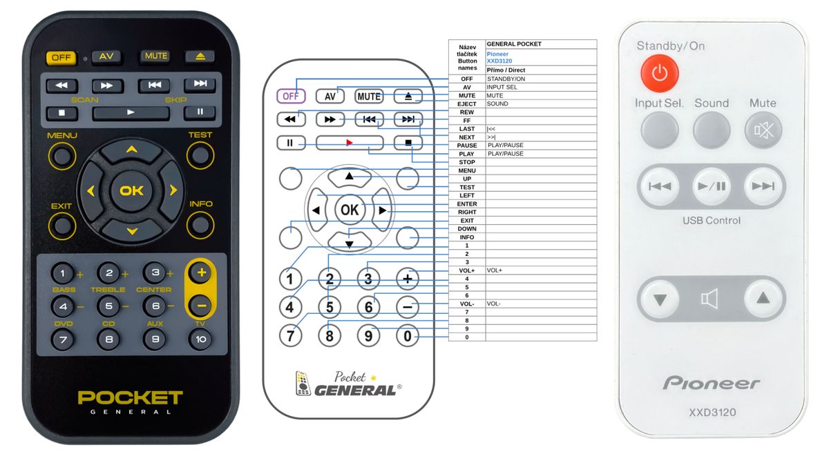 Náhradní dálkový ovladač PIONEER XXD3120 - 100% náhrada 1:1 za originální dálkový ovladač.