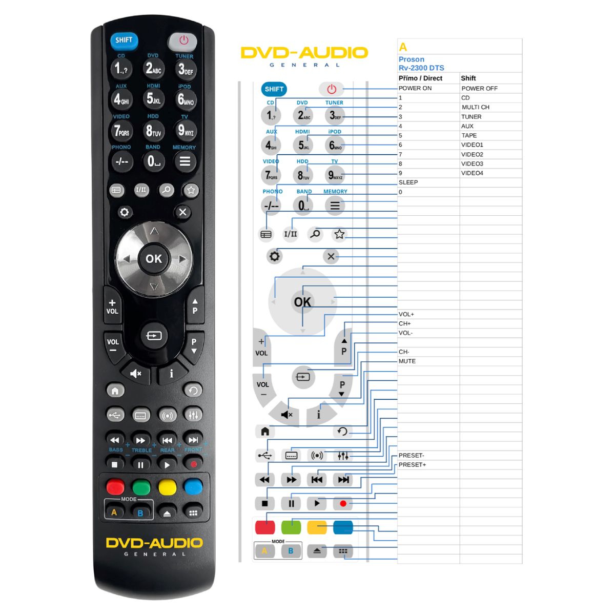 Náhradní dálkový ovladač PROSON RV-2300DTS (RV2300DTS) - 100% náhrada 1:1 za originální dálkový ovladač.