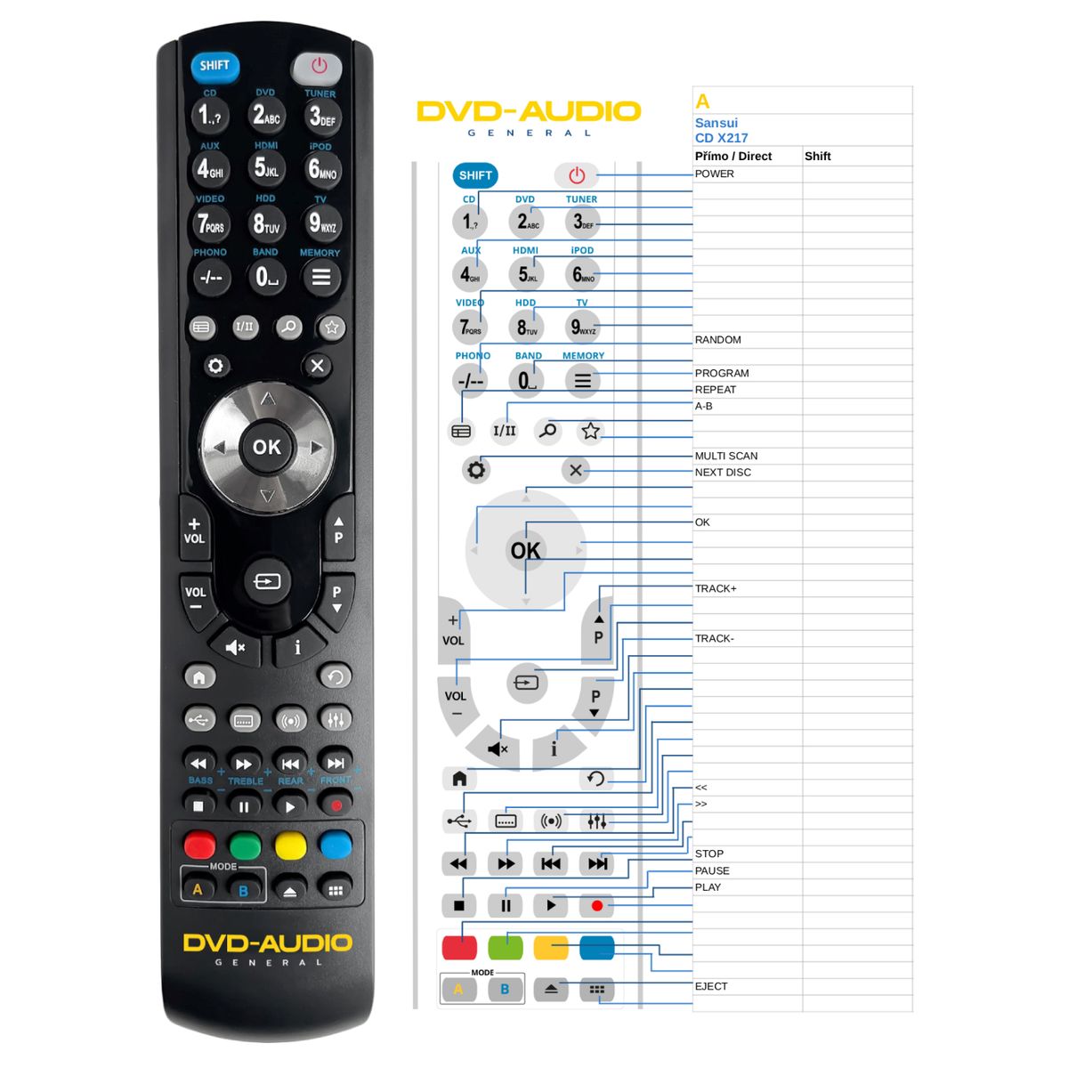 Náhradní dálkový ovladač SANSUI CD-X217 (CDX217) - 100% náhrada 1:1 za originální dálkový ovladač.