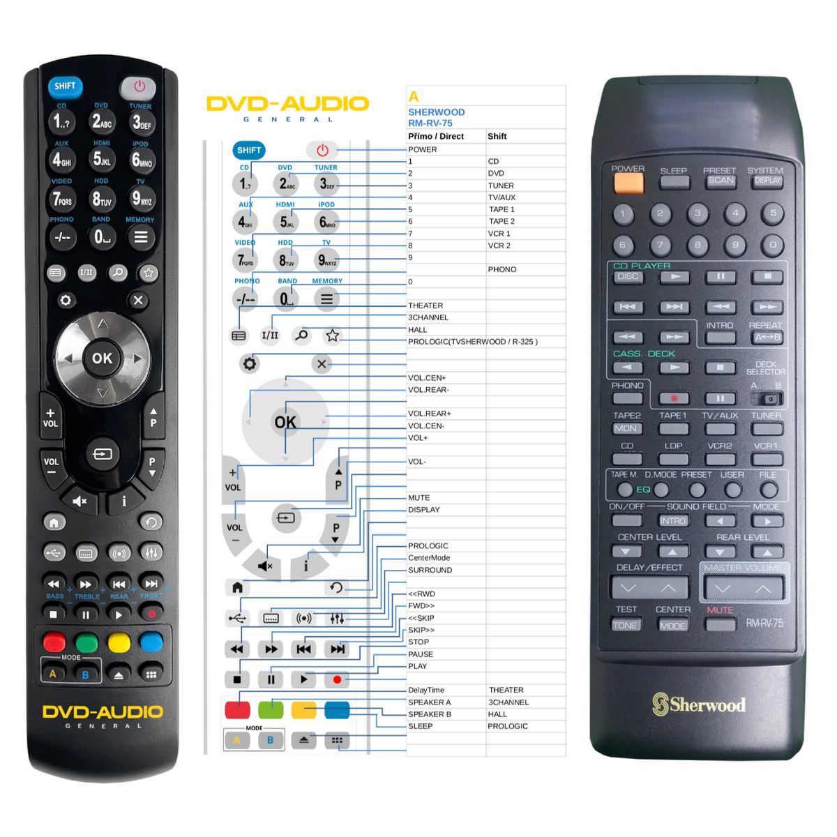 Náhradní dálkový ovladač SHERWOOD RM-RV-75 (RMRV75) - 100% náhrada 1:1 za originální dálkový ovladač.