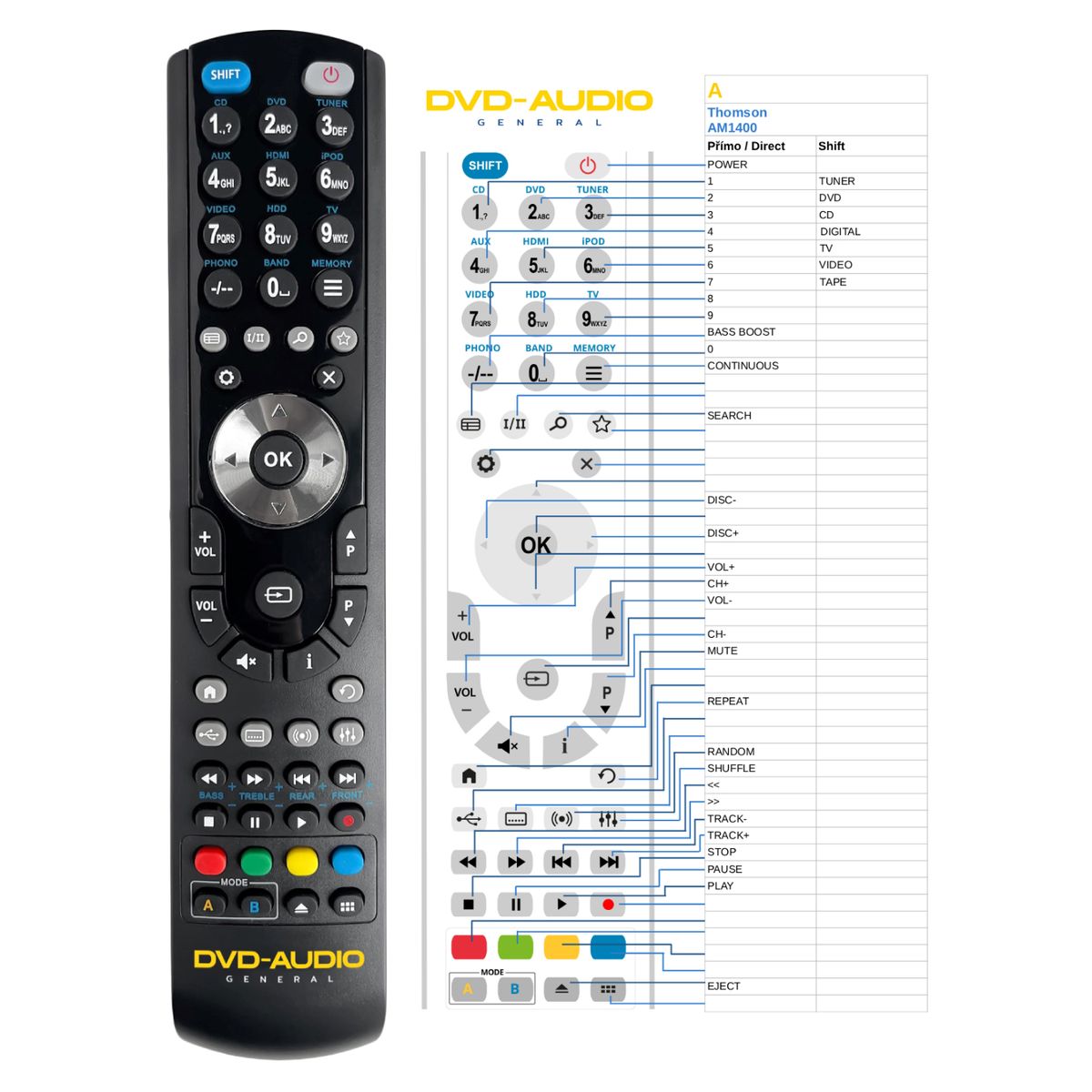Náhradní dálkový ovladač THOMSON AM1400 - 100% náhrada 1:1 za originální dálkový ovladač.