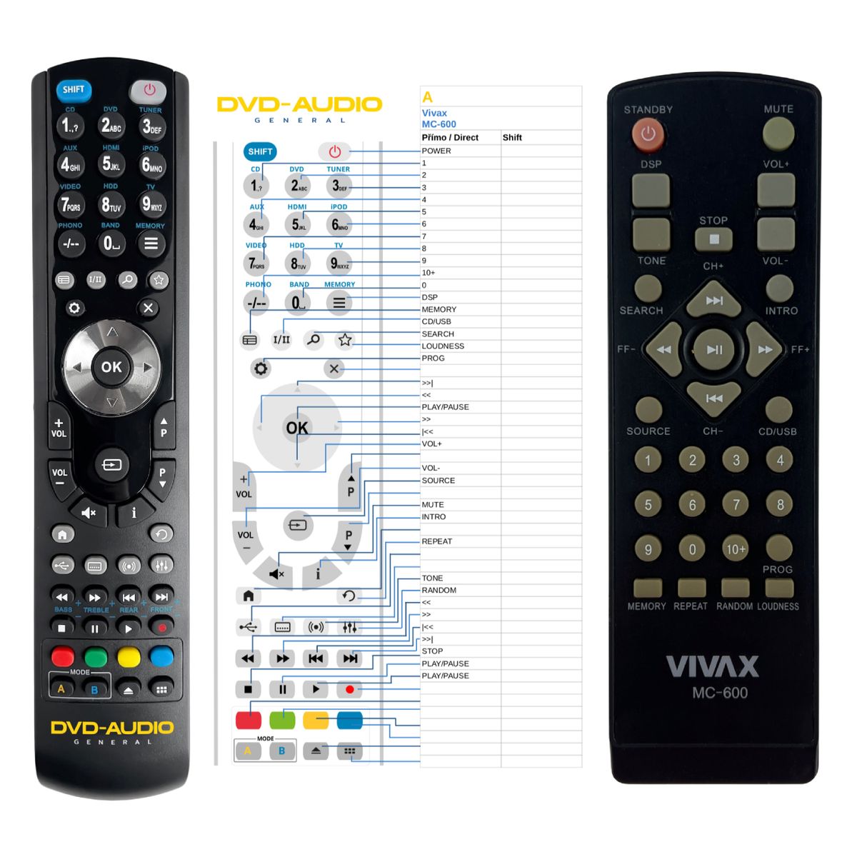 VIVAX MC-600 - kompatibilní značkový dálkový ovladač General