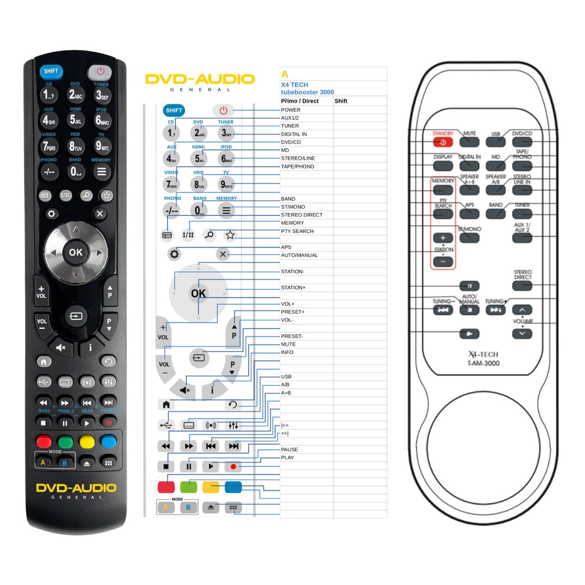 Ovladač je dodáván ve verzi značkového dálkového ovladače General DVD/AUDIO (zobrazen vlevo). Garantujeme Vám, že dostanete ovladač, který plně nahradí Váš původní originální ovladač a bude mít naprosto všechny funkce stejné.