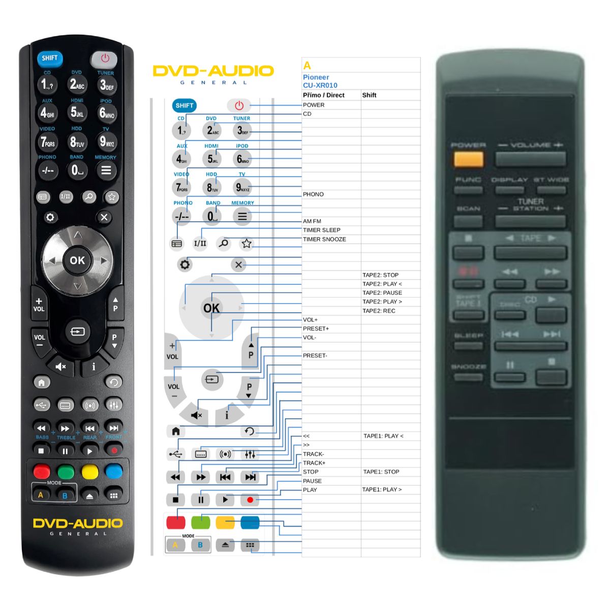 Náhradní dálkový ovladač PIONEER CU-XR009, CU-XR010 (CUXR009, CUXR010) - 100% náhrada 1:1 za originální dálkový ovladač.