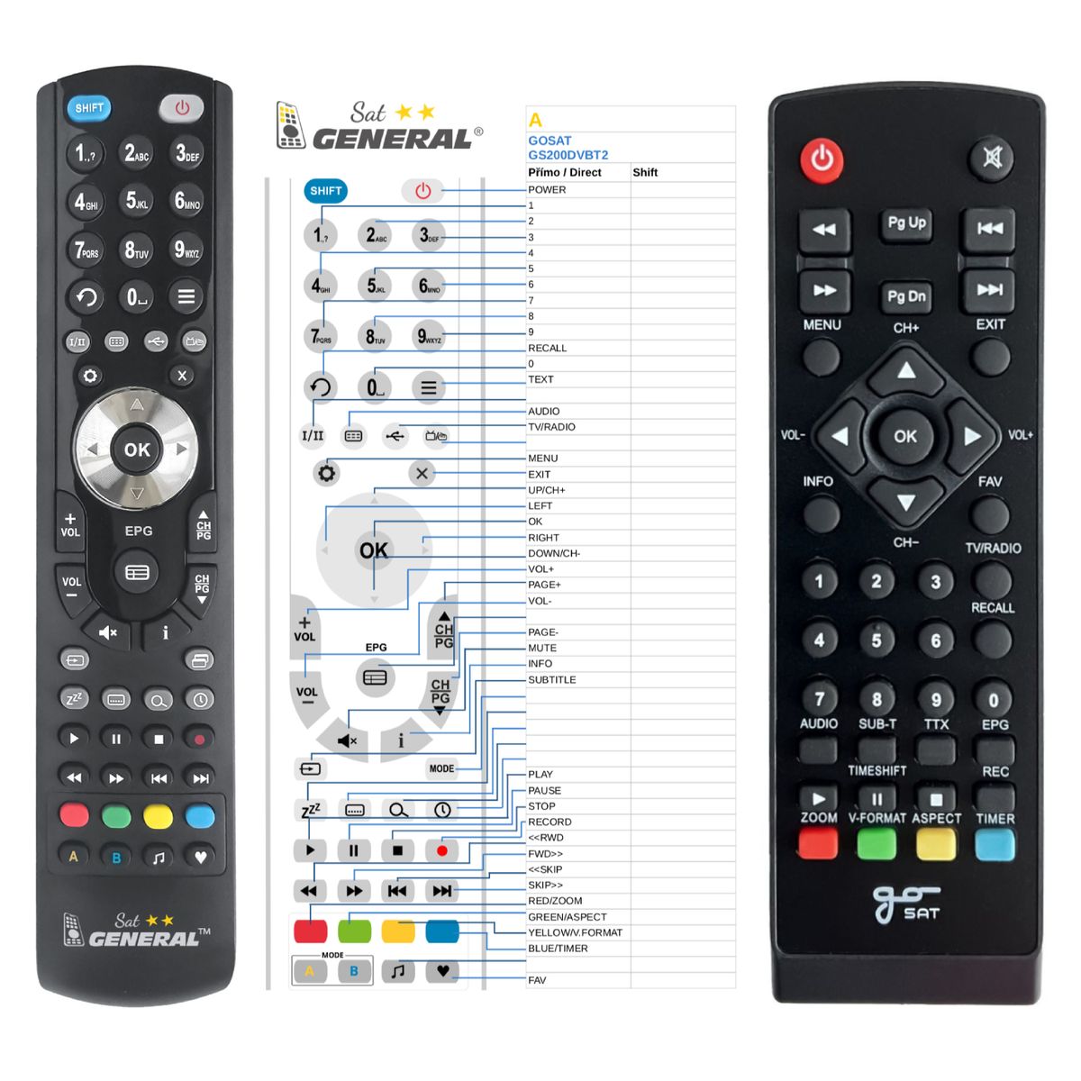 Náhradní dálkový ovladač GOSAT GS200DVBT2 - 100% náhrada 1:1 za originální dálkový ovladač.