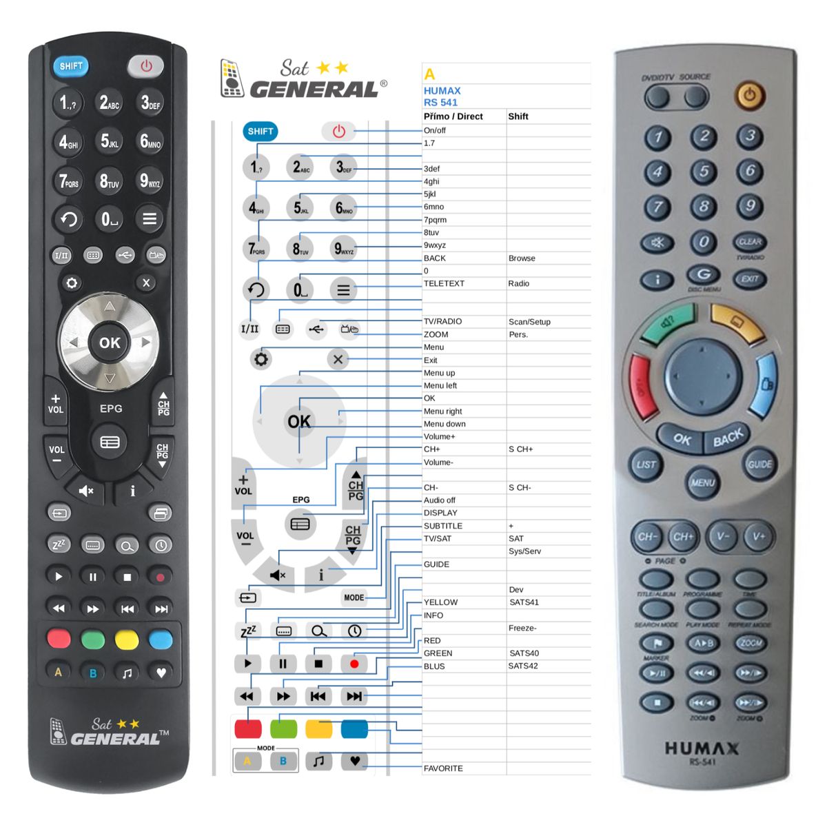 Náhradní dálkový ovladač HUMAX RS-541 (RS541) - 100% náhrada 1:1 za originální dálkový ovladač.