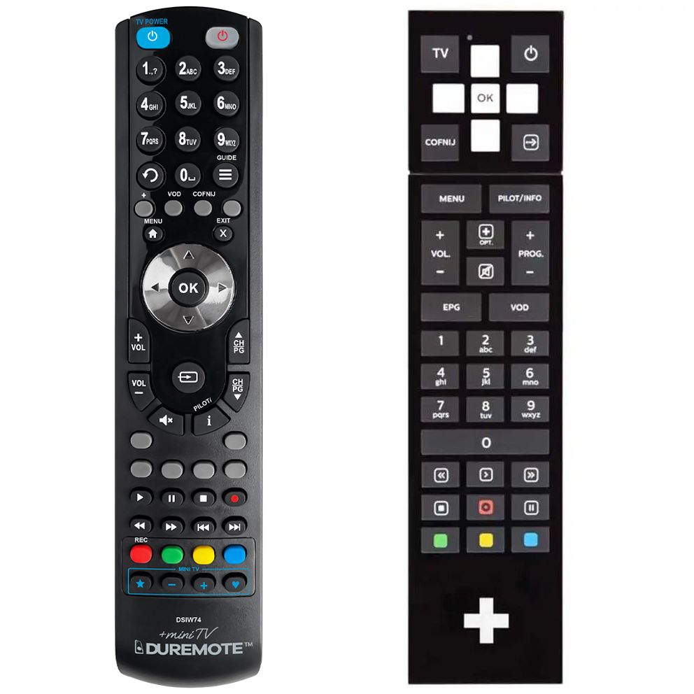 DUPLIKÁT 2 v 1: Tento ovladač má sekci tlačítek MINI-TV pro funkce, které jej můžete naučit z Vašeho TV ovladače. To znamená, že jedním ovladačem můžete ovládat 2 přístroje, například set top box + základní funkce TV. Způsob učení tlačítek naleznete v přiloženém návodu v krabičce, ve které Vám bude ovladač dodán.