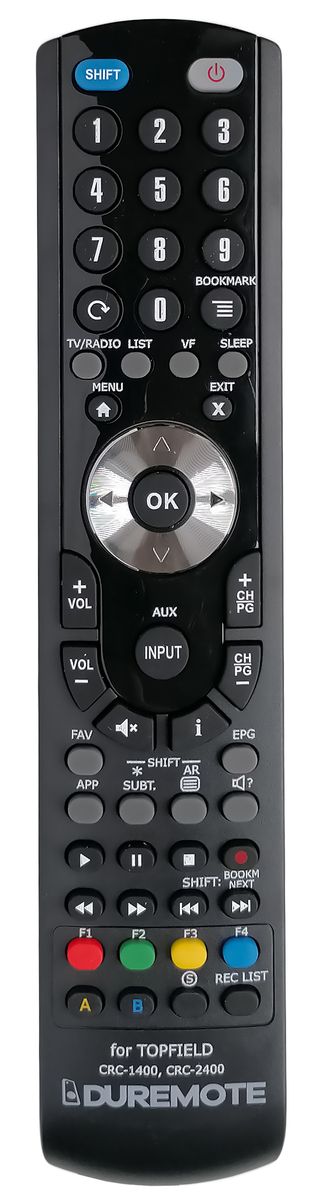 Dokonalá 1:1 kopie navržená a vyrobená naší firmou – má všechny funkce originálního ovladače pro tyto modely značky TOPFIELD: CRC-1400, CRC-2400, CRC-3000, CRC1400, CRC2400. (Nemusí zde být uvedeny úplně všechny kompatibilní modely. Pokud si nejste jisti, sdělte nám svůj model (použijte online chat, e-mail, telefon), neprodleně zkontrolujeme a ověříme, zda je tento ovladač kompatibilní s Vaším přístrojem. Za poskytnutou informaci ručíme.)