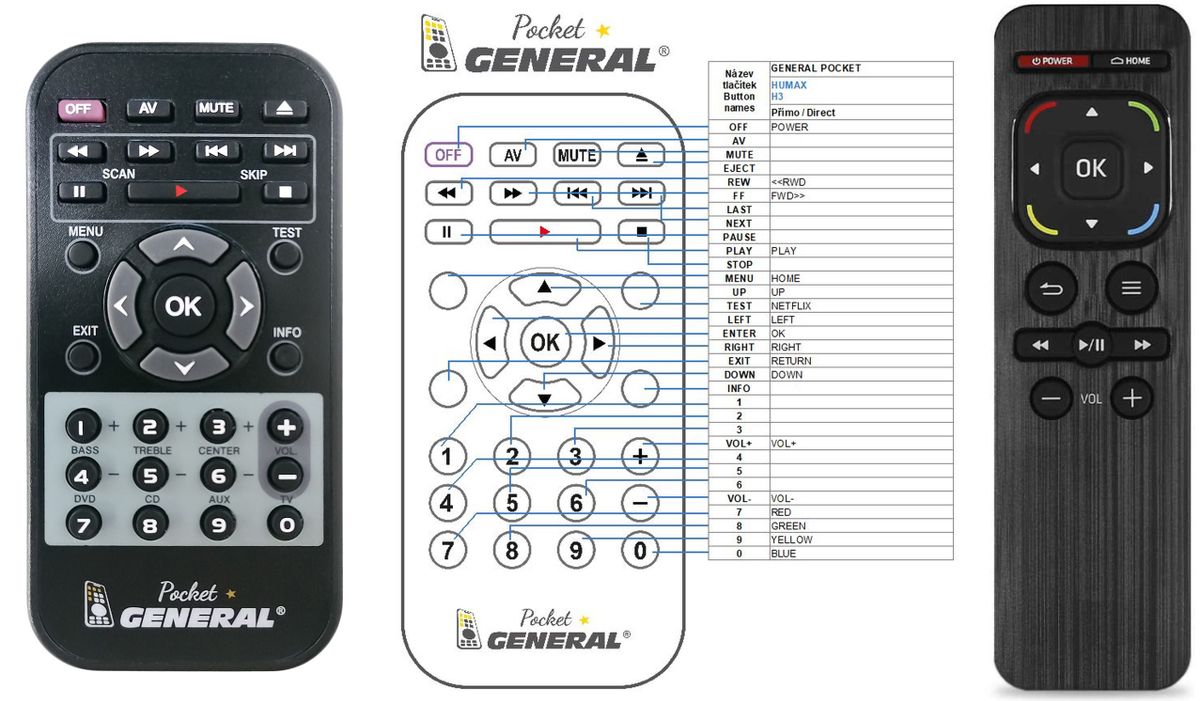 HUMAX H3 - kompatibilní značkový dálkový ovladač General