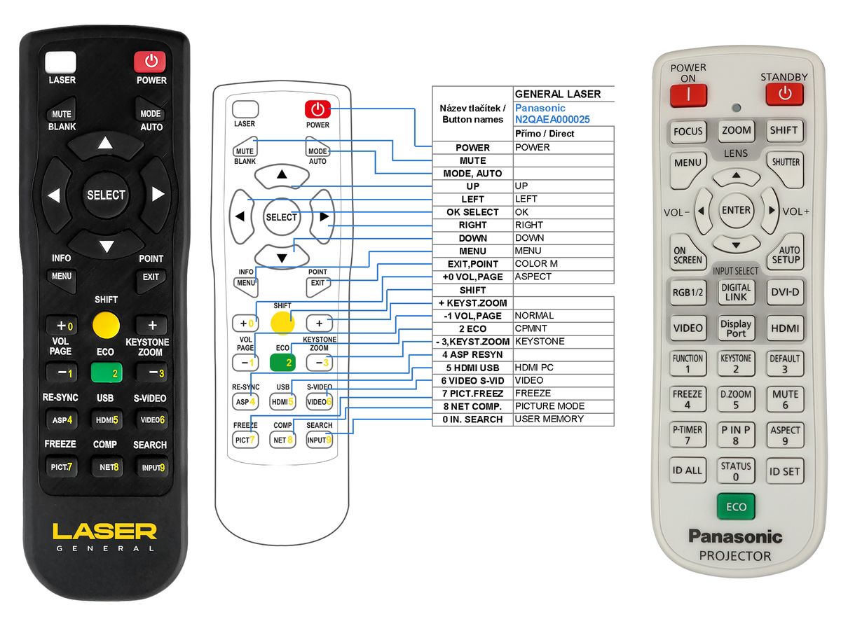 Máme skladem 365 typů dálkových ovladačů pro Projektory. Vyberte si originální ovladač, vysoce kvalitní náhradu General a Duremote nebo levný náhradní ovladač. Máme největší sklad dálkových ovladačů v Evropě.