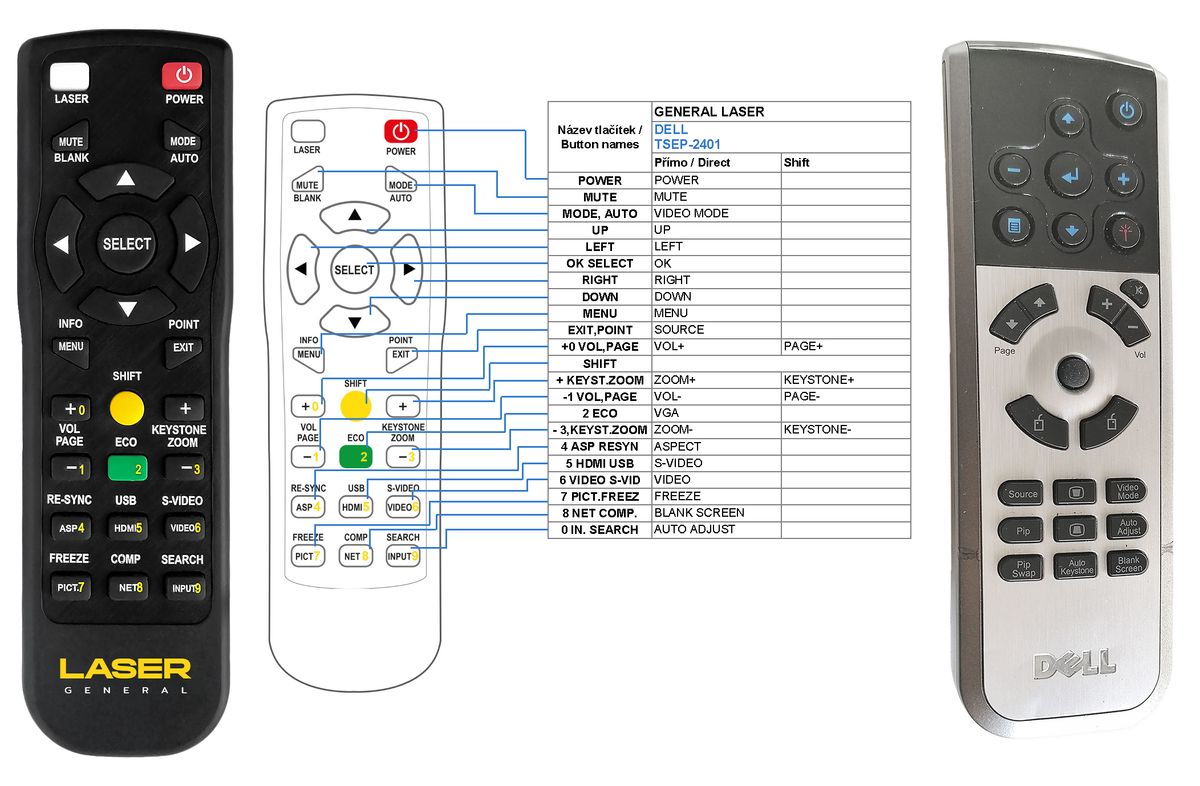 Náhradní dálkový ovladač DELL TSEP-2401, 310-6895, 3300MP, 5100MP, RD230 (TSEP2401, 3106895, 3300MP, 5100MP, RD230) - 100% náhrada 1:1 za originální dálkový ovladač.